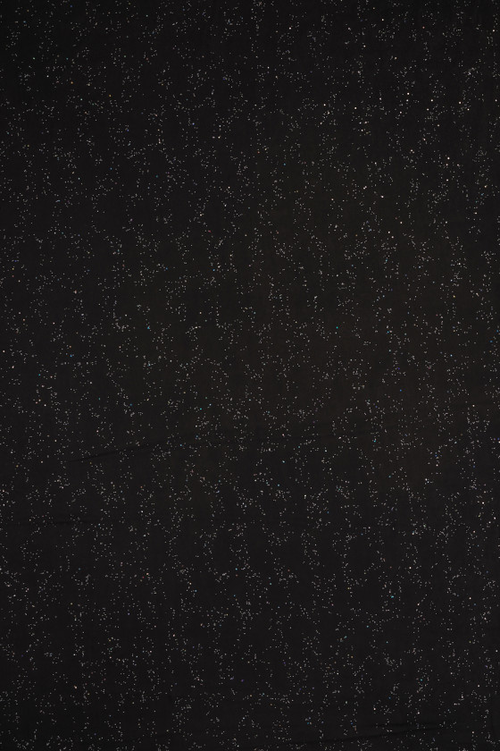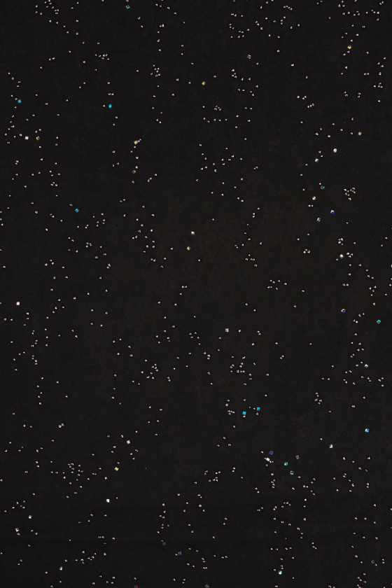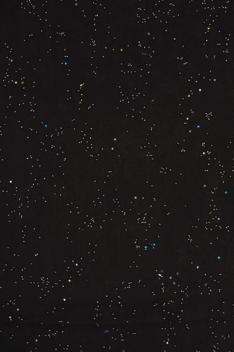 Італійський шифон з поліестеру чорного кольору з різнокольоровими дрібними прикрасами. Тонка, прозора, м'яка і нееластична тканина - відмінно підійде для пошиття сукні, блузки, спідниці або шалі.