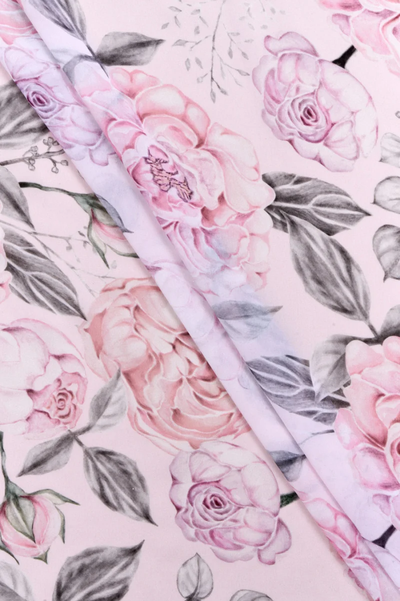 Італійський шифон з поліестеру з мотивом великих півоній на світло-рожевому тлі. Візерунок виконаний в ніжних, пастельних тонах. Тканина повітряна, легка, прозора, дуже ніжна і приємна на дотик. Романтична пропозиція для людей, яким подобається квітковий дизайн. Тканина відмінно підійде для пошиття повітряного сукні, спідниці, блузки і шалі.