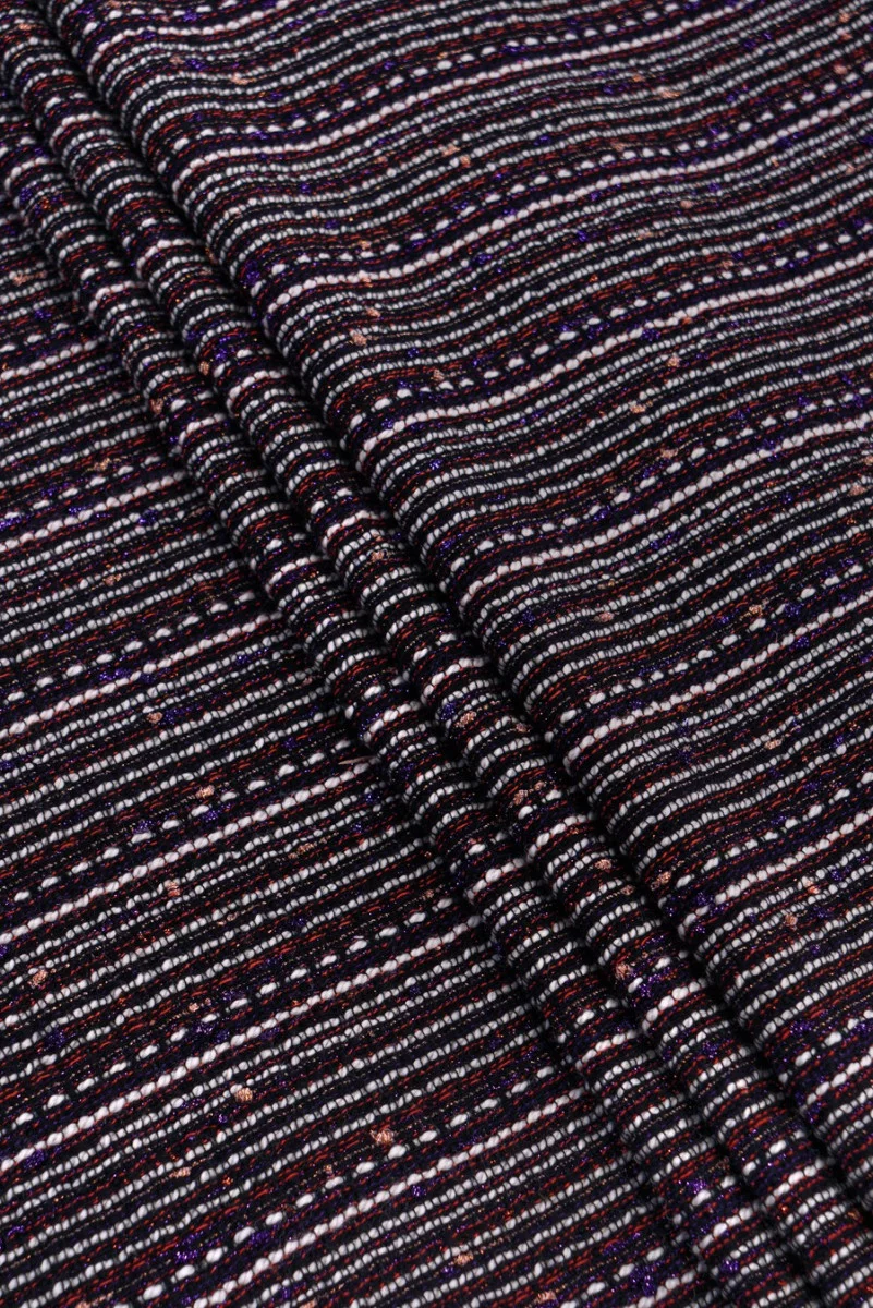 Італійська костюмна тканина Шанель з люрексовою ниткою, компактного переплетення у вигляді смужок. Кольори: чорний, фіолетовий, екрю, червоний, золотий.