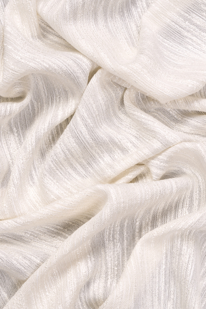 Італійська костюмна тканина Шанель кремового кольору з рідкісним плетінням з ефектом меланжу. Тонка, прозора тканина.