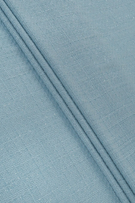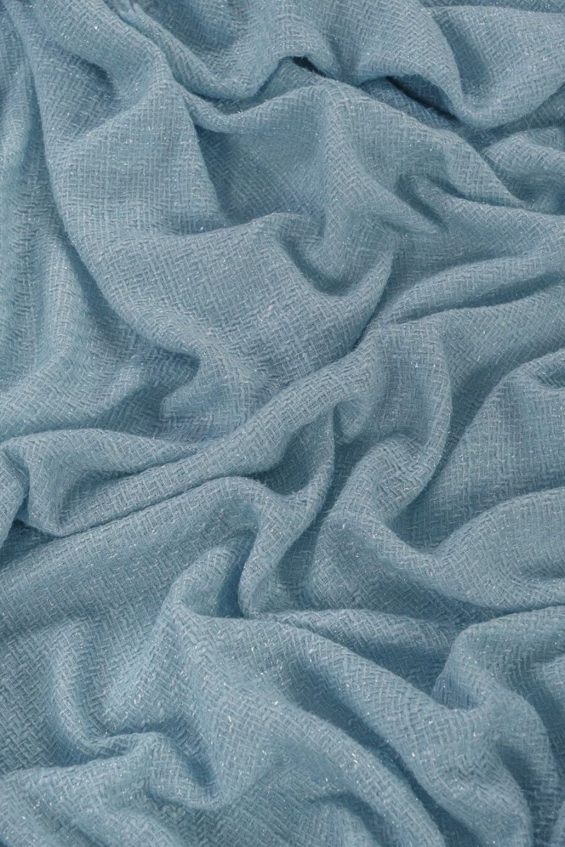 Італійська костюмна тканина Шанель синього кольору з вплетеною в неї люрексовою ниткою. Ідеально підходить для таких комплектів, як: жакет + спідниця або сукні. Також з його допомогою можна пошити тонке перехідне пальто.