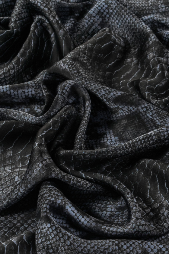 Італійський атлас 100% шовк з мотивом зміїної шкіри в сірому і чорному кольорах. Шовковий сатин - ніжна тканина, бархатиста на дотик, з легким блиском.