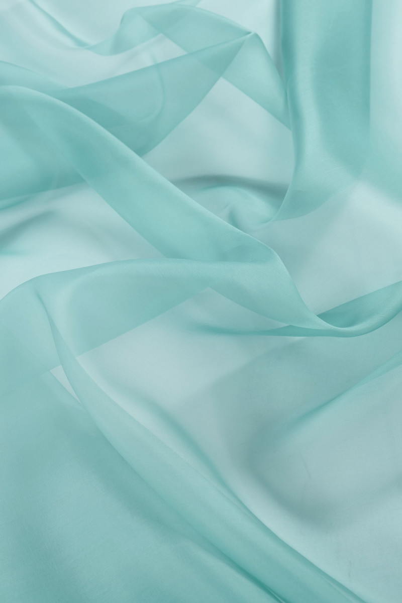 Італійська 100% шовкова тканина органза приглушеного бірюзового кольору. Органза з натурального шовку - це тонка, прозора, але жорстка тканина з ніжним блиском, характерним для шовкових тканин. Відмінно підійде для пошиття сукні, блузки, сорочки, спідниці.