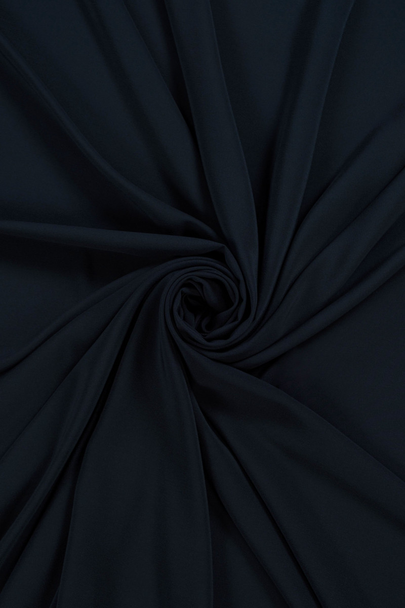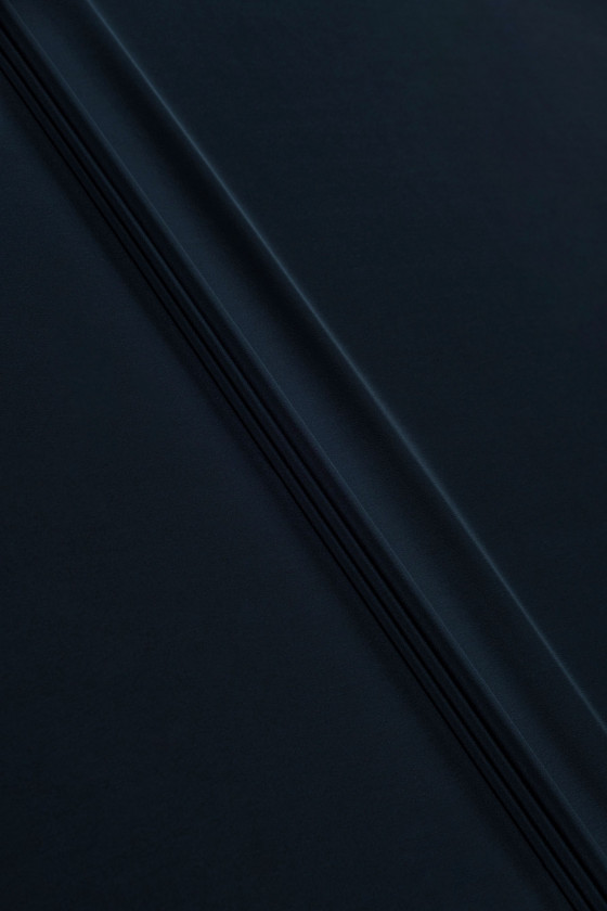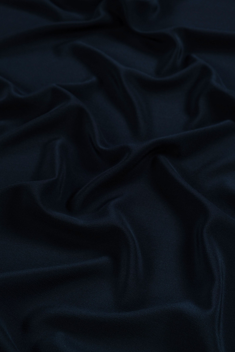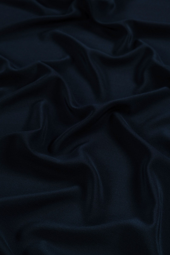 Італійський креп 100% шовк кольору дуже темно-синього кольору. Шовковий креп — це ніжна, тонка, напівматова тканина з зернистою структурою. Він м'який на дотик і дуже добре сидить. Його можна використовувати для створення легких суконь, делікатних блузок, спідниць, шарфів, шарфів.