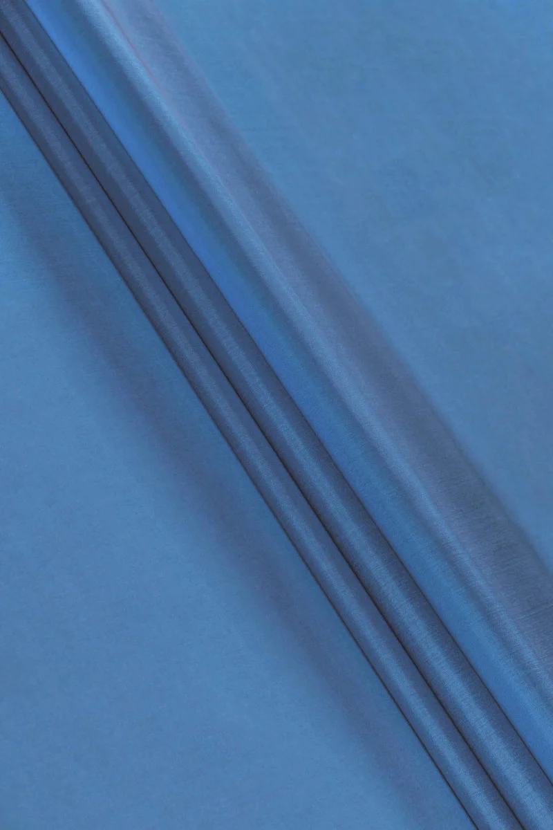 Італійська 100% шовкова тканина органза синього кольору. Органза з натурального шовку - це тонка, прозора, але жорстка тканина з ніжним блиском, характерним для шовкових тканин. Відмінно підійде для пошиття сукні, блузки, сорочки, спідниці.