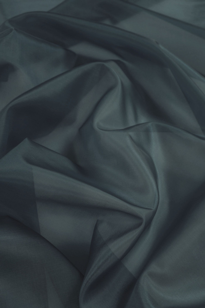 Італійська 100% шовкова тканина органза графітового кольору з краплею синього. Органза з натурального шовку - це тонка, прозора, але жорстка тканина з ніжним блиском, характерним для шовкових тканин. Відмінно підійде для пошиття сукні, блузки, сорочки, спідниці.