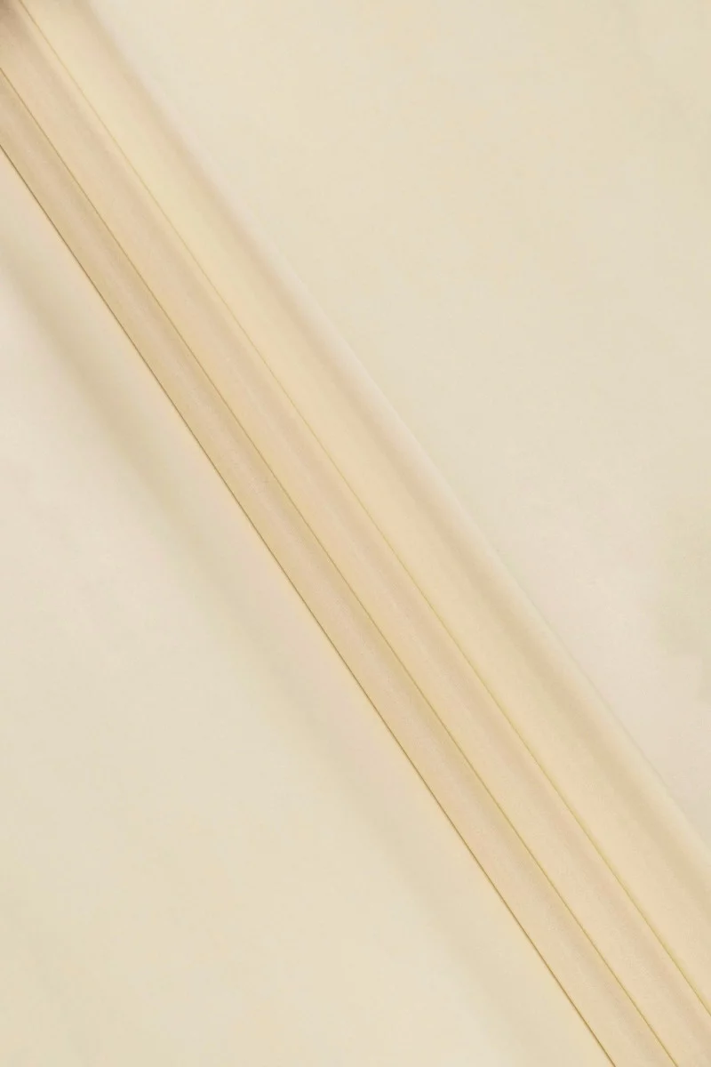 Жорстка органза з натурального шовку ванільного кольору, середньої прозорості. Його можна використовувати для пошиття ошатних суконь, спідниць, на шалі і в якості декоративної тканини.