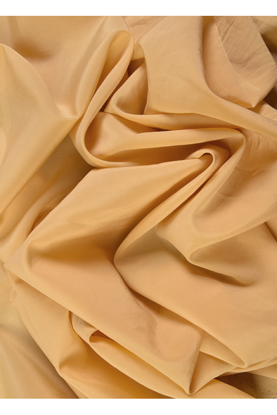 Шовковий креп - ніжна, тонка, але непрозора, напівматова тканина. З його допомогою можна викликати повітряні сукні, ніжні кофтинки, шарфи, хустки. Фото у світло-жовтому кольорі.