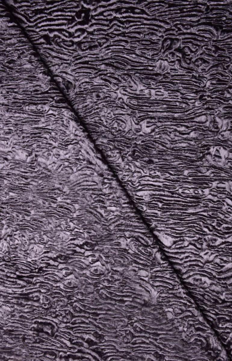Еко хутро приглушеного фіолетового кольору (світло-баклажановий) з короткою шерстю. За текстурою нагадує хутро каракулеса, тканина середньої товщини, нееластична.