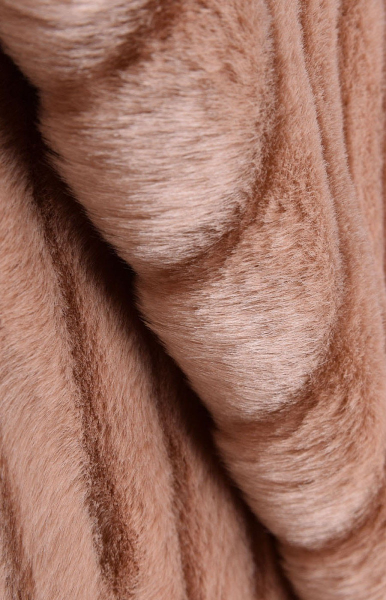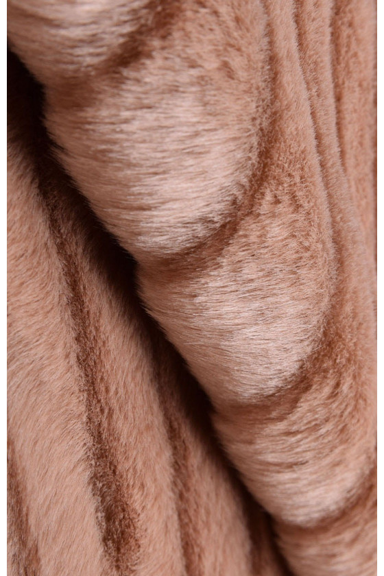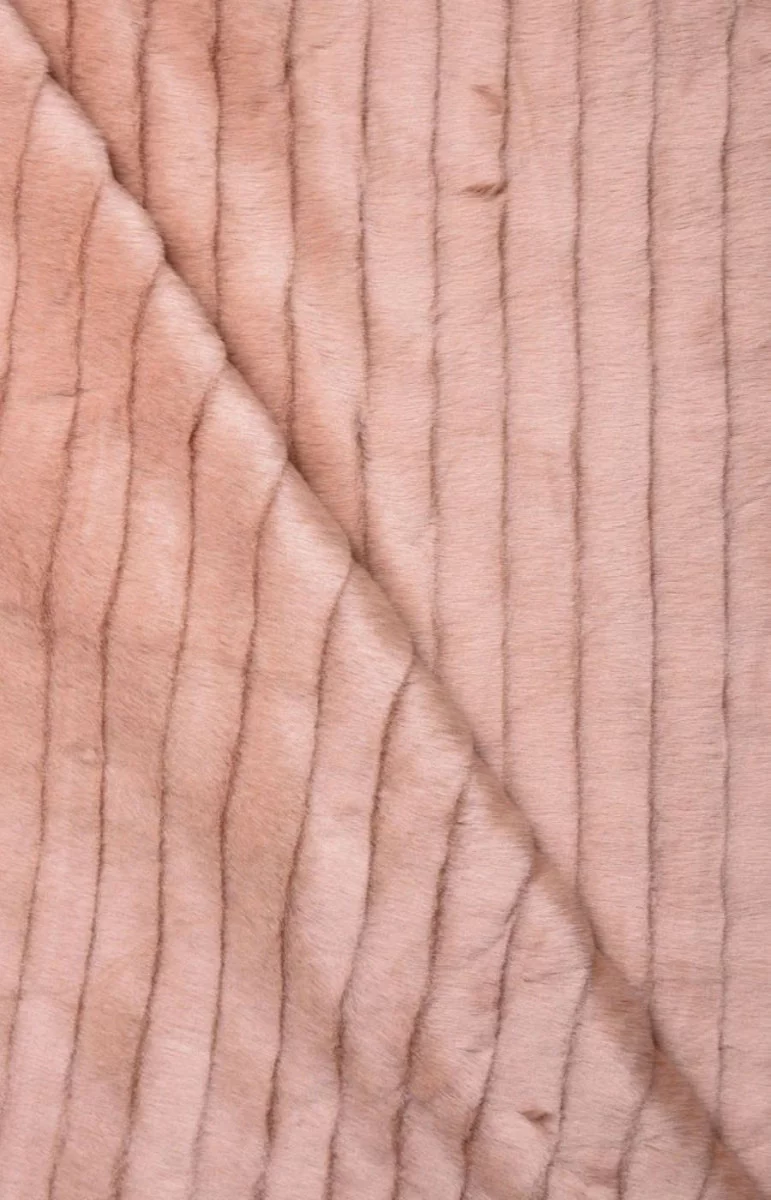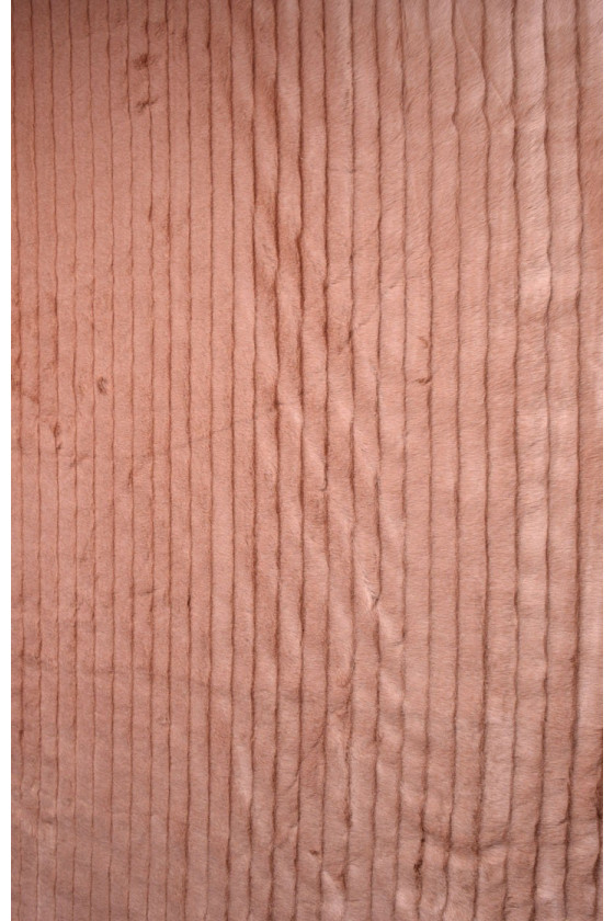 Щільне штучне хутро пудрово-рожевого кольору для пальто або курток, елегантних палантинів або оздоблення верхнього одягу. Довжина волосяного покриву близько 1 см. Смуги шириною близько 2 см.
