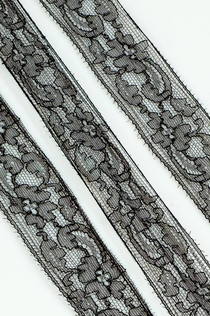 Італійська мереживна стрічка чорного кольору. Тонкий, ніжний з квітковим мотивом. Ідеально підходить для обробки блуз, суконь, нічної білизни.