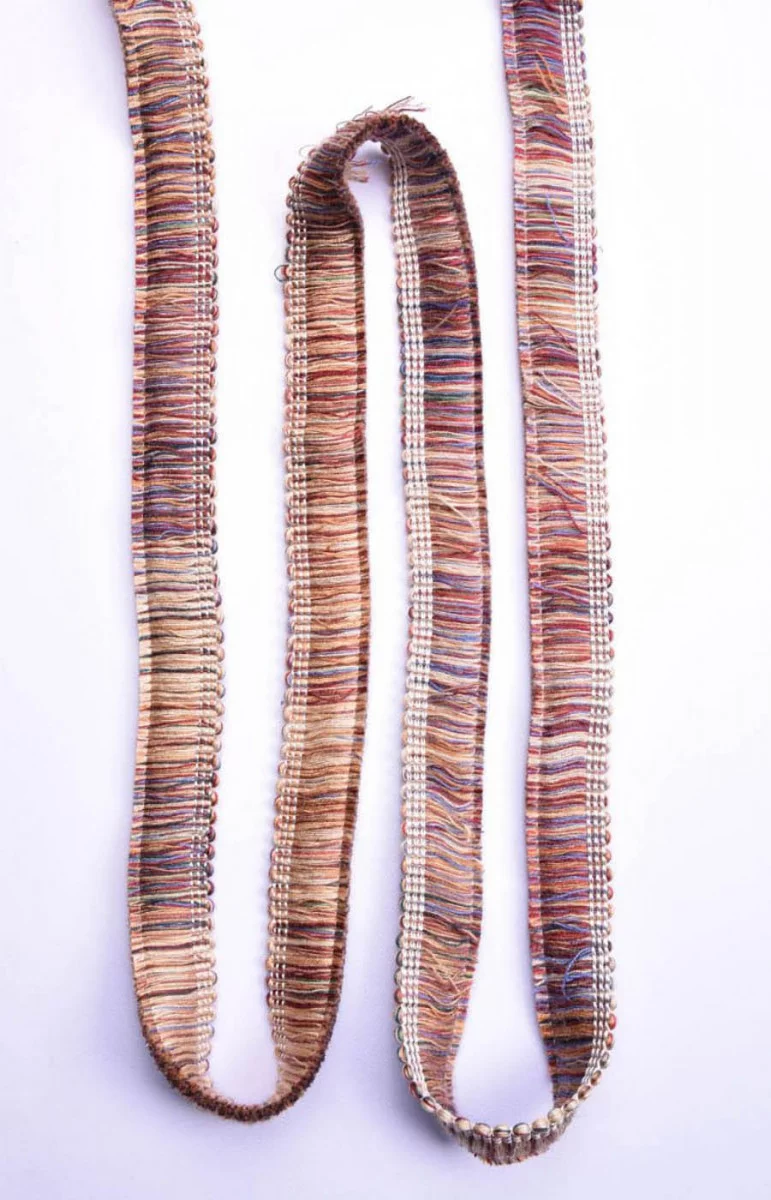 Красива різнобарвна стрічка, призначена для тканин Chanel. Стрічку можна розрізати з одного боку. При зрізі вона утворює так звані пензлики.