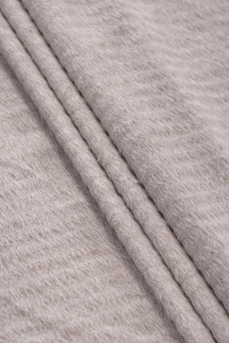Італійська тканина для пальто холодного бежевого кольору. Вплетені в оригінальні смуги з натуральної вовни та альпаки. Тканина, що містить шерсть альпаки, має відмінну повітропроникність і теплоізоляційні властивості, має більш довгий ворс і дуже м'яка. Відмінно підійде для пошиття пальто, куртки, жилета.