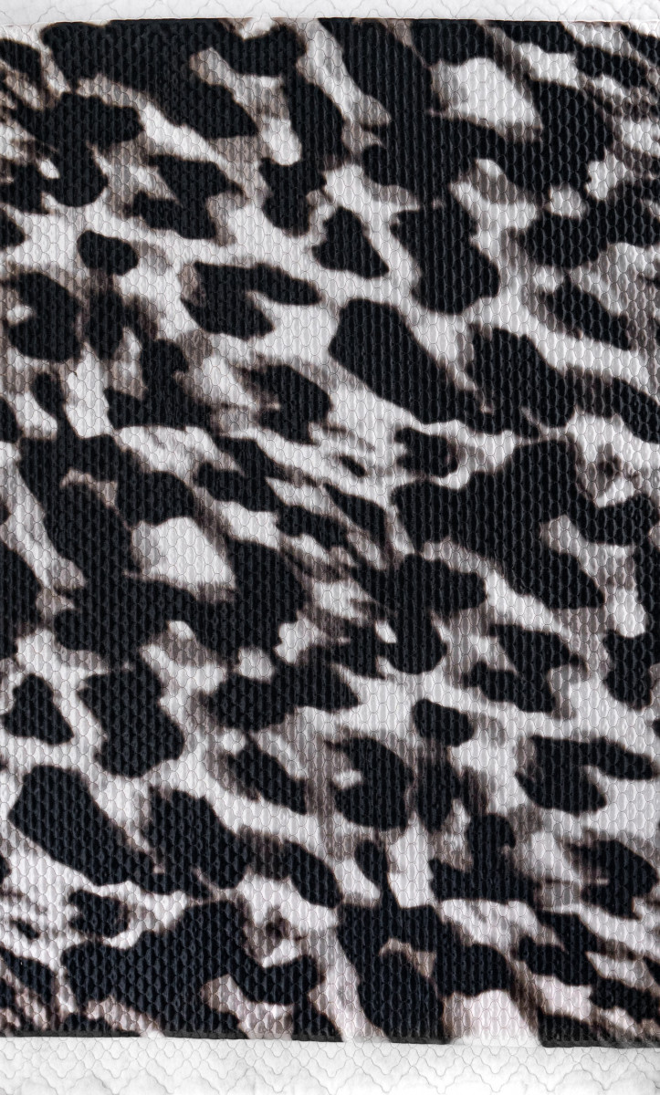 Останній купон цікавої, двосторонньої стьобаної тканини. З одного боку, з малюнком з великих, темно-коричневих плям на білому тлі, з іншого без малюнка в сірому і кам'яному кольорі.