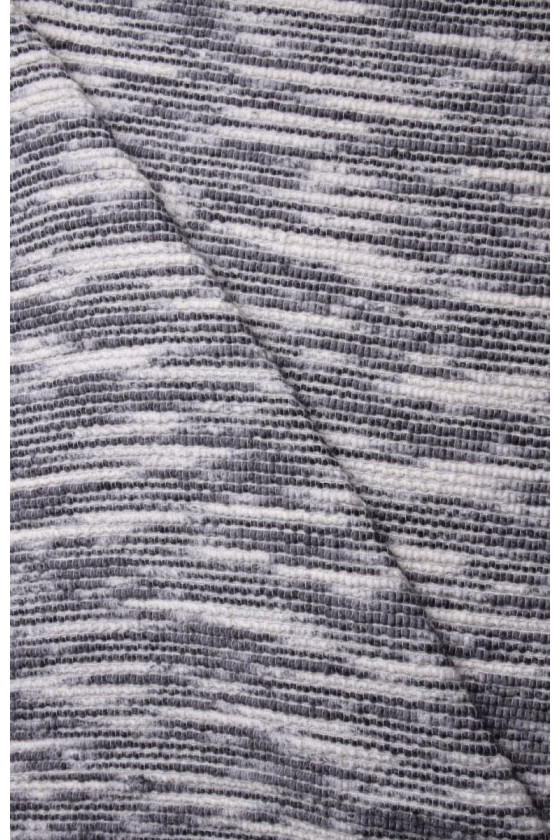 Італійська пальтова тканина, виткана з натуральної вовни з додаванням кашеміру в сіро-кремовому кольорі з мотивом смужок з опуклою фактурою. Вовняні тканини ідеально підходять для верхнього одягу (пальто, куртка, жилет), тому що вони зігрівають і в той же час дозволяють шкірі дихати. Додавання кашеміру робить його ще кращим теплоізоляційним, оскільки кашемір тепліший за овечу вовну.