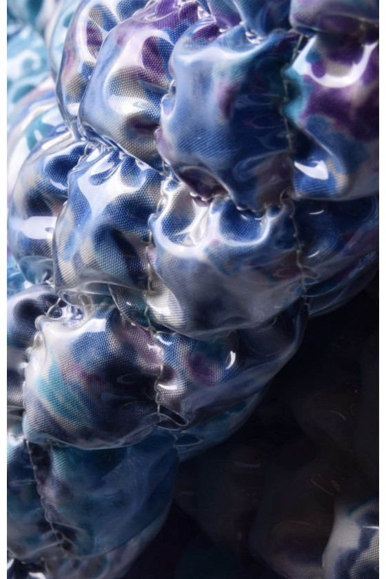 Ексклюзивна тканина куртки, утеплена, стьобана. Також з нього можна пошити цікаві сумки. Увага: тканина має похибки - тріснула фольга.