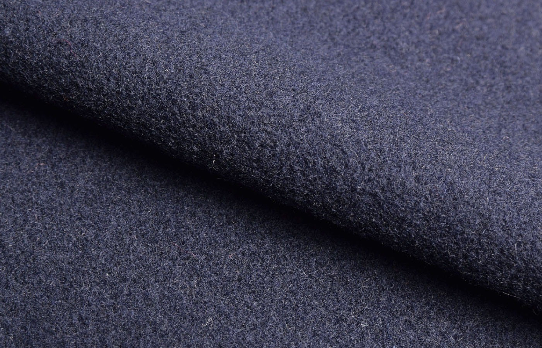 Італійська пальтова тканина, виткана з вовни вергіну з додаванням кашеміру темно-синього кольору Вовняні тканини ідеально підходять для верхнього одягу (пальто, куртка, жилет), оскільки вони зігрівають і в той же час дозволяють шкірі дихати. Додавання кашеміру робить його ще кращим теплоізоляційним властивістю, оскільки кашемір тепліший за овечу вовну.