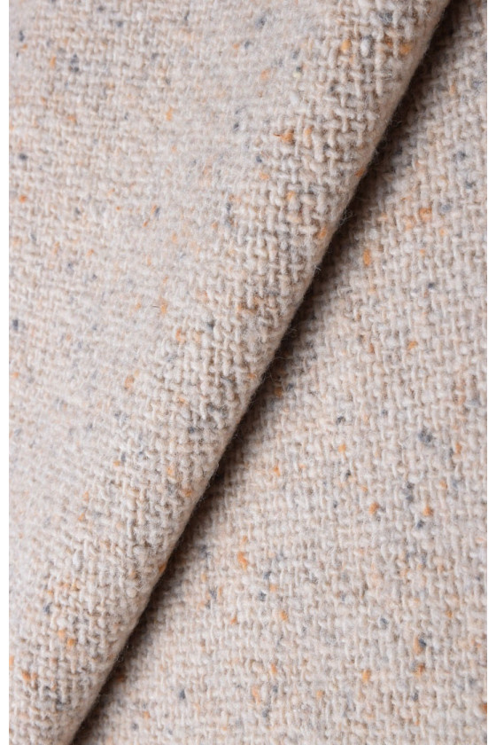 Італійська пальтова тканина виткана з 100% натуральної вовни бежевого кольору - тканина проклеєна вітрозахисною мембраною. Вовняні тканини ідеально підходять для верхнього одягу (пальто, куртка, жилет), тому що вони зігрівають і в той же час дозволяють шкірі дихати.
