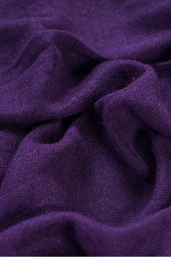 Італійський светр з трикотажного полотна дуже хорошої якості, витканого з вовни, акрилу і мохеру. Гнучкий, тонкий, дуже легкий з тонким волоссям. Відмінно підійде для пошиття тонкого светра, водолазки або плаття. Колір: сливово-фіолетовий