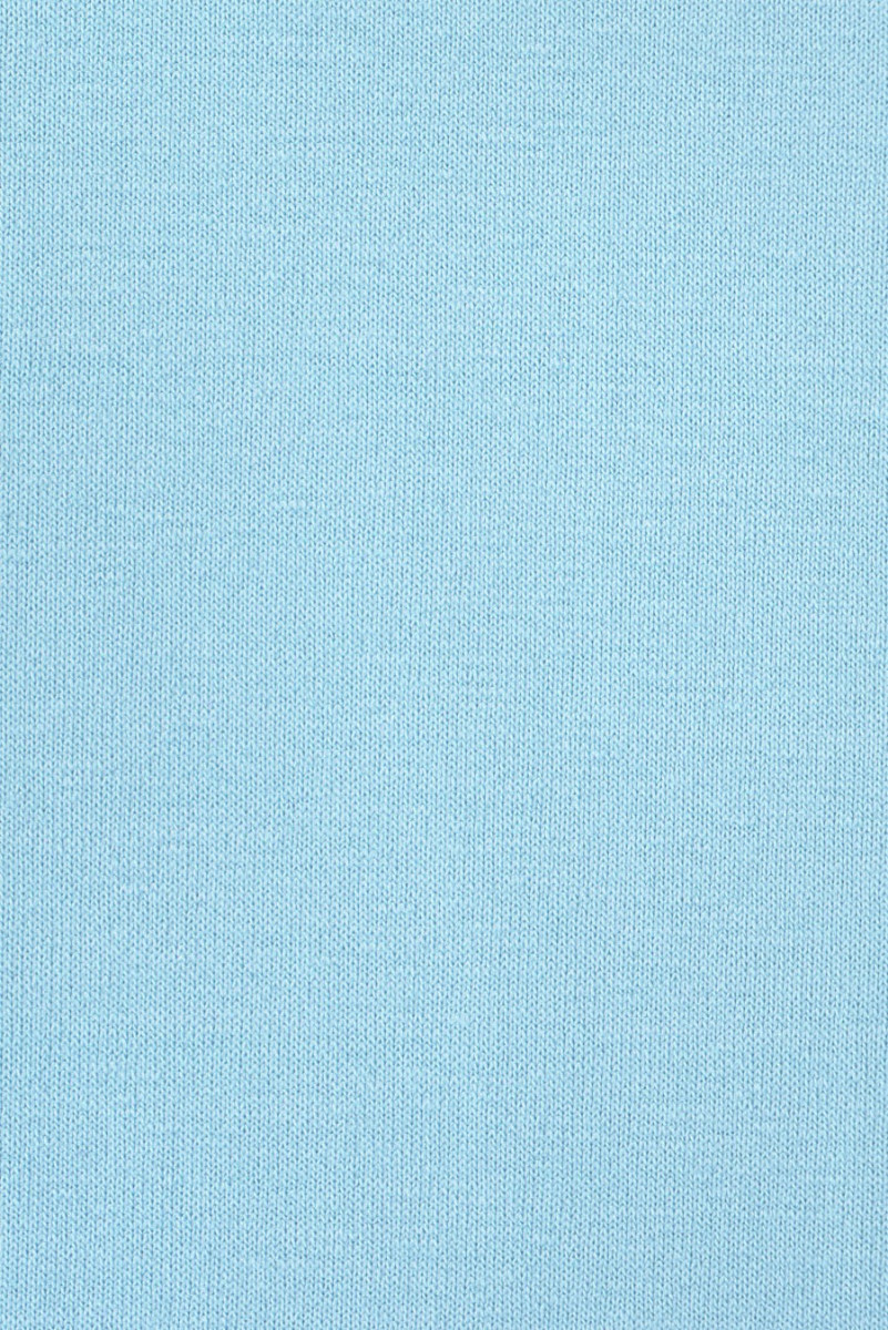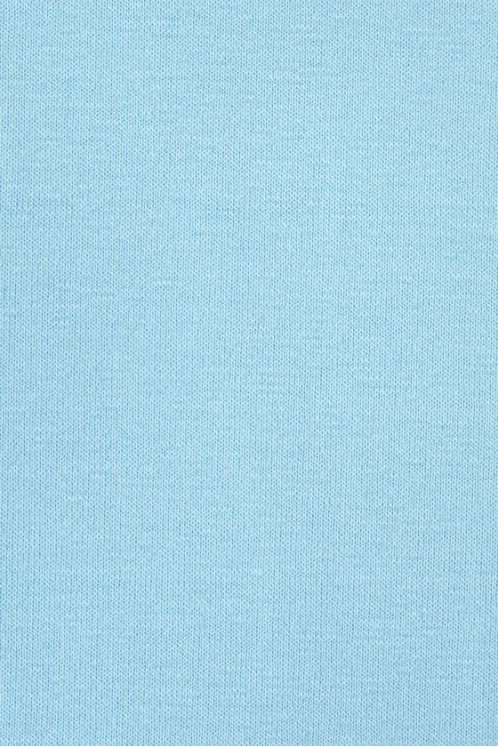 Трикотажне полотно (вага 200 г/м2) виткане з віскози 92% та еластану 8% світло-блакитного кольору. Тканина еластична, м'яко драпірується, дуже приємна на дотик, підходить для пошиття літніх блузок, суконь і шарфів.