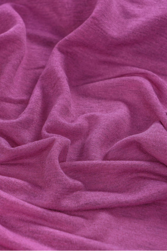 Італійське віскозне трикотажне полотно рожевого кольору з сірою ниткою (меланж) - дуже хорошої якості. М'ясиста, еластична - відмінно підійде для пошиття блузки або футболки.