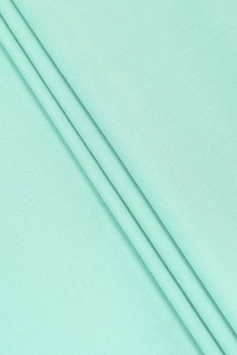 Італійське віскозне трикотажне полотно світло-бірюзового кольору - дуже хорошої якості. М'ясиста, пружна з легким блиском.