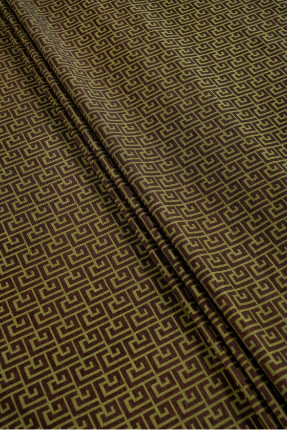 Італійський віскозний трикотажний полотно в оливково-коричневому кольорі - підписано логотипом відомого французького Будинку моди. Джерсі - це м'ясиста, непрозора, м'яко драпірується трикотажна тканина, яку можна шити без підкладки.