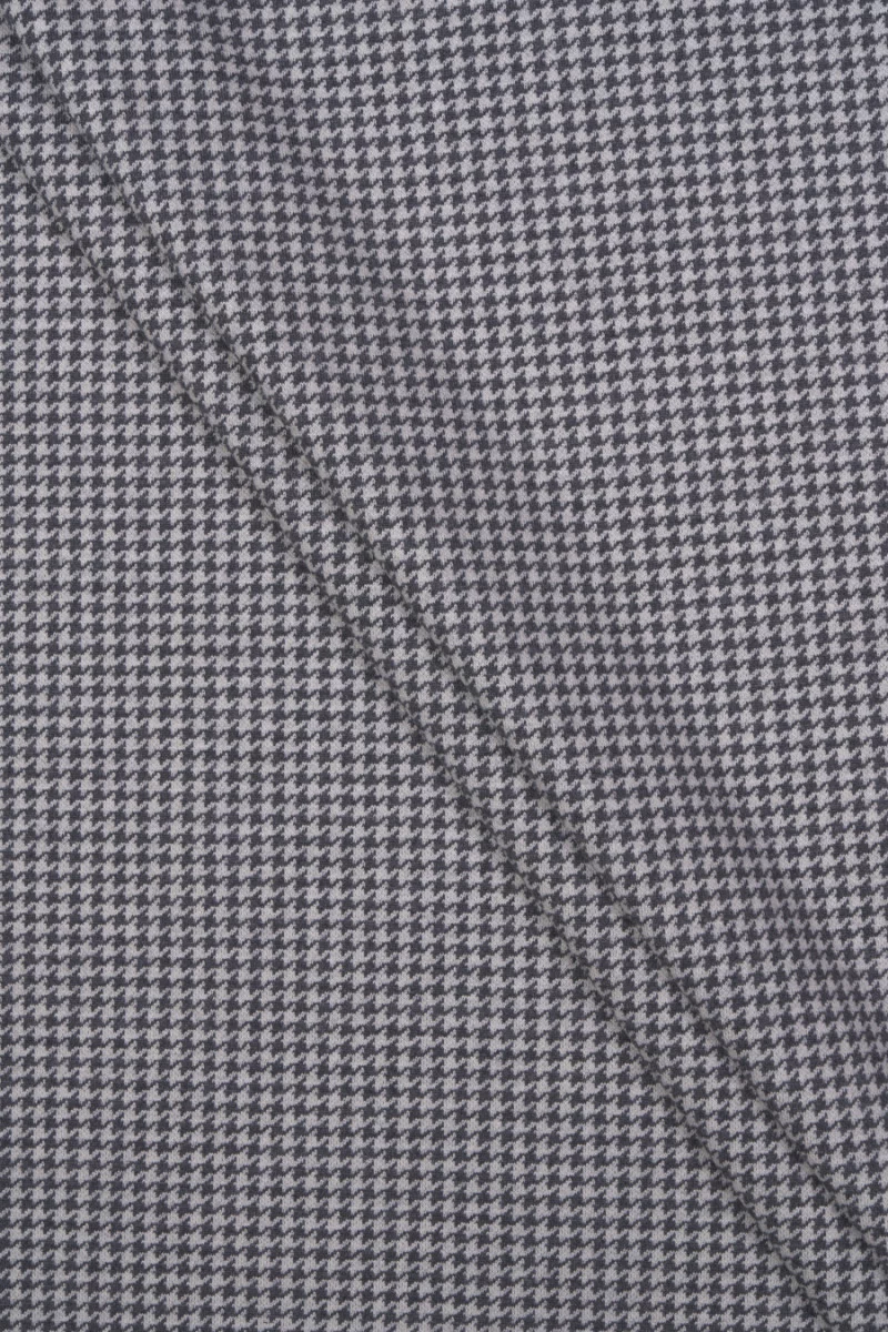Італійське трикотажне полотно 100% шерсть з сіро-кремовим мотивом курячої лапки (0,5 см). Тканина Джерсі - це покривна, м'яко драпірується трикотажна тканина, яку можна шити без підкладки.