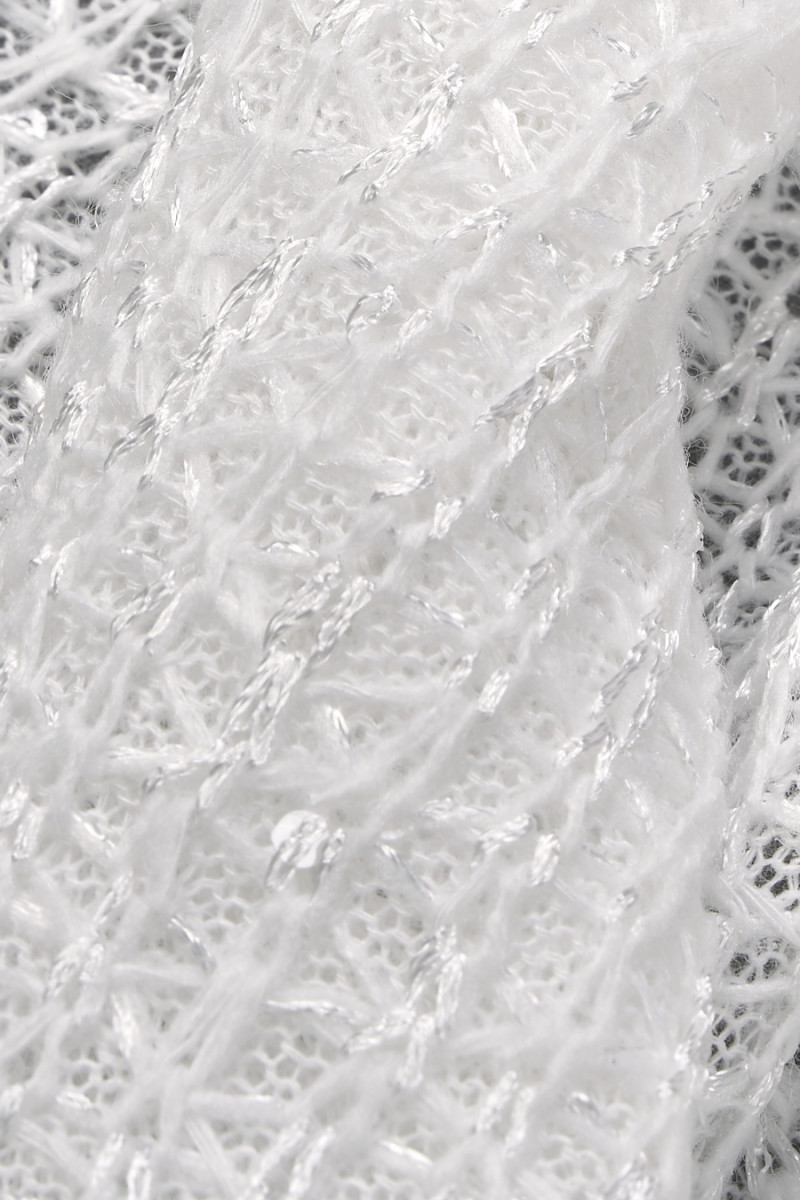 Італійський светр в'язаний ажурним плетінням кремового кольору, тонко прикрашений дрібними паєтками. Тонке, прозоре, ніжно блискуче трикотажне полотно - відмінно підійде для пошиття светра або шалі.