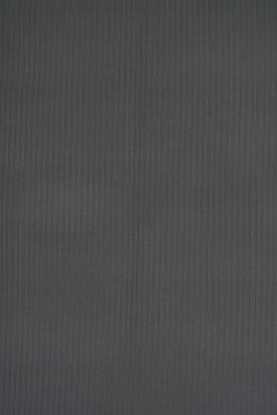 Італійське трикотажне полотно з широким переплетенням в рубчик (0,5 см) сірого кольору. Трикотажне полотно м'яке, дуже еластичне, непрозоре, приємне на дотик. Купон розмірами 100см*120см.