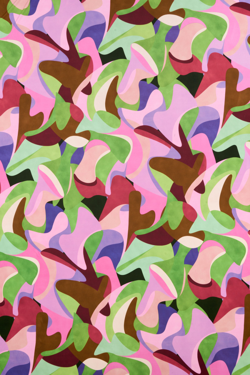 Італійське віскозне трикотажне полотно з барвистим, геометричним візерунком. Тканина м'ясиста, еластична, прохолодна на дотик, повністю непрозора, матова і гладка. Фантастична пропозиція для літнього одягу, такого як сукні, блузи, спідниці, шорти або штани.