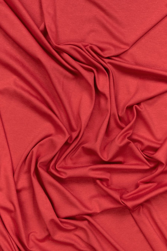 Італійське трикотажне полотно, виткане з 100% мікромолдалі червоного кольору. Трикотажне полотно середньої товщини, м'яке, приємне на дотик і еластичне. Ми рекомендуємо його для блуз, топів, футболок та легінсів.