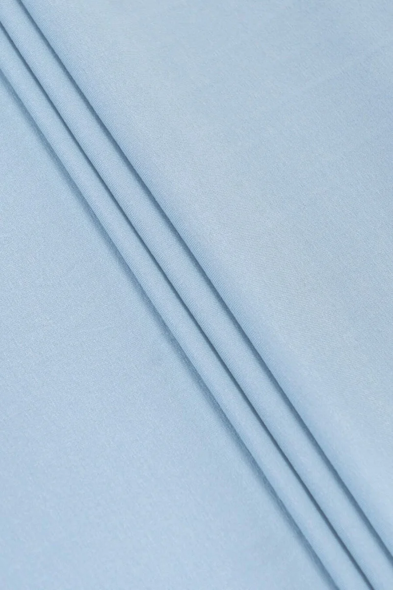 Італійське 100% віскозне трикотажне полотно в двох кольорах - синьому і світлому, меланжевого салатового відтінку. Трикотажне полотно тонке, але непрозоре, м'яке, еластичне і матове. Ми рекомендуємо його в першу чергу для блуз, топів, футболок, він також добре підійде для суконь та спідниць.