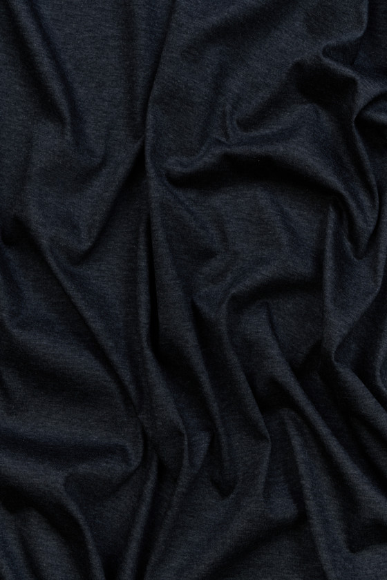 Італійське трикотажне полотно виткане з 100% віскози графітового кольору, меланжу. Трикотажне полотно тонке, злегка прозоре, ідеально підходить для кофтинок, м'яке, матове і еластичне. Ми рекомендуємо його для блуз, топів, футболок та легінсів.