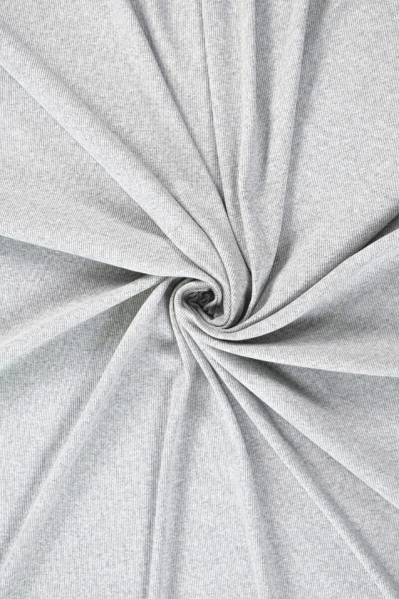 Італійське віскозне трикотажне полотно світло-сірого кольору, шириною 90 см. Тканина з характерним, ребристим переплетенням, що нагадує рант.
