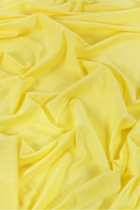Віскозне трикотажне полотно з додаванням еластану - тонкий, еластичний і струмуючий матеріал. Трикотажне полотно має гладке трикотажне переплетення і надзвичайно приємне на дотик. Матеріал виготовлений з пряжі натурального походження. Віскозне трикотажне полотно відрізняється високою еластичністю. Нитки віскозної пряжі надзвичайно м'які та драпіровані, а еластичні волокна надають матеріалу стійкість до зминання та еластичність.
