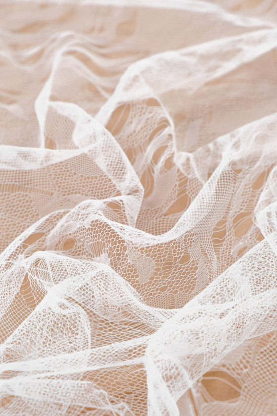 Дуже ніжне весільне мереживо, оригінально виткане, в кольорі екрю, м'яке на дотик, добре облягає.