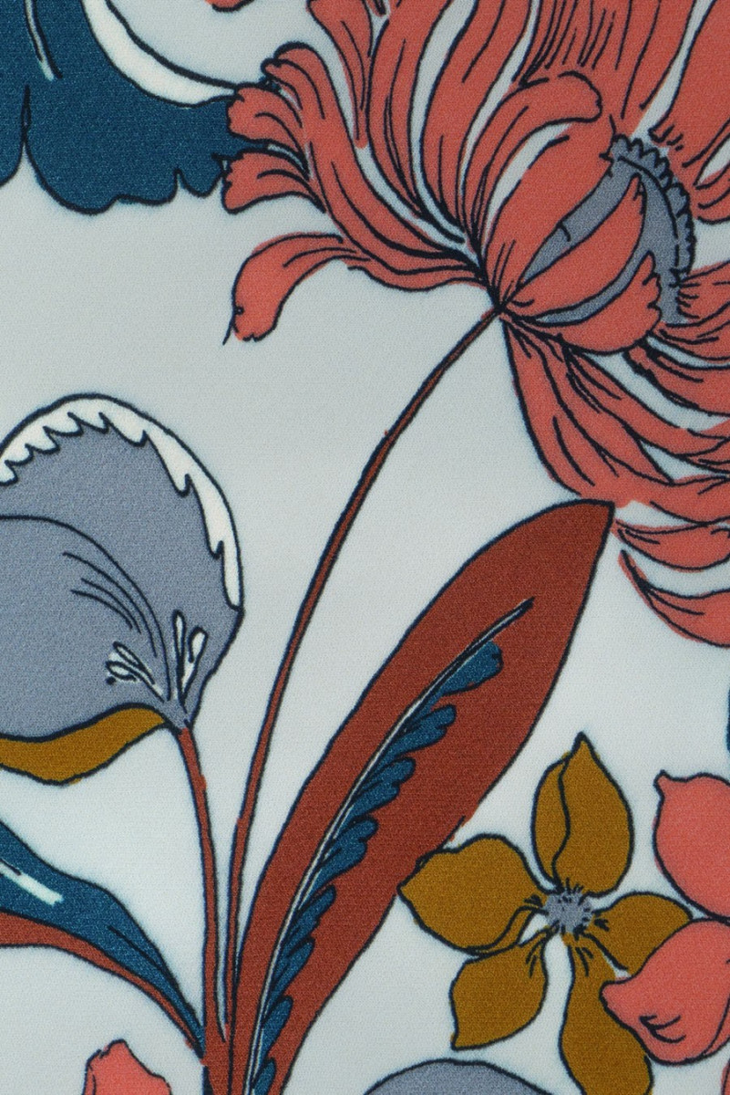 Італійська тканина 100% віскоза каді. Мотив різнокольорових квітів на брудно-м'ятному тлі. Щільна, струмлива, що не еластична тканина - відмінно підійде для пошиття сукні, блузки, спідниці.
