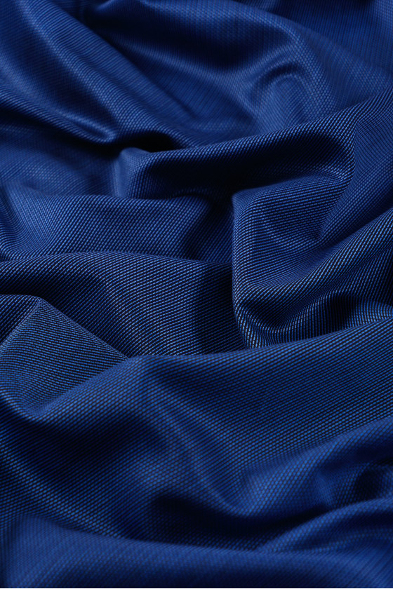 Італійська жакардова віскозна тканина чорного кольору з темно-синьою ниткою. Віскоза - натуральна тканина (отримується з целюлози), дуже м'яка, повітряна, злегка жорстка - відмінно підійде для пошиття літнього плаття, блузки або спідниці.