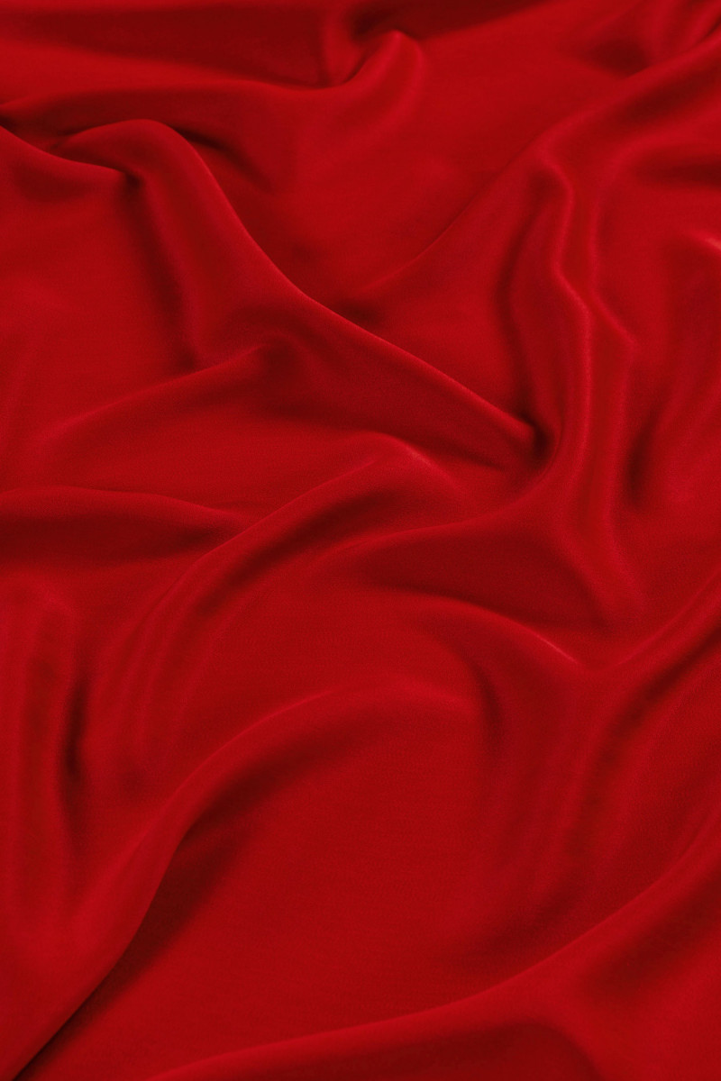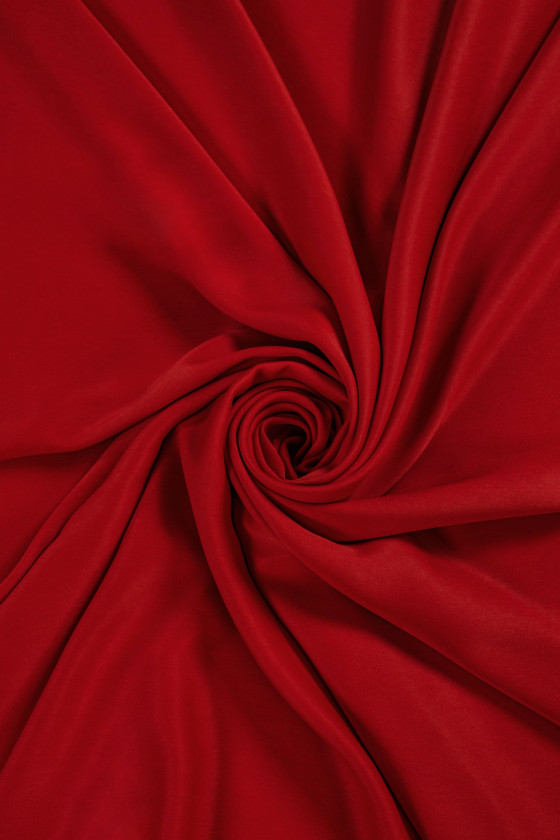 Італійська віскозна тканина каді червоного кольору. Тканина сукні Cadi непрозора, м'ясиста, струмлива (важка) і нееластична. З його допомогою можна шити сукні, блузи, спідниці, штани, костюми.