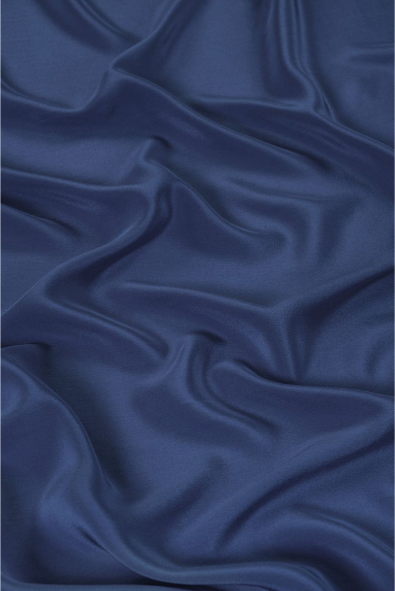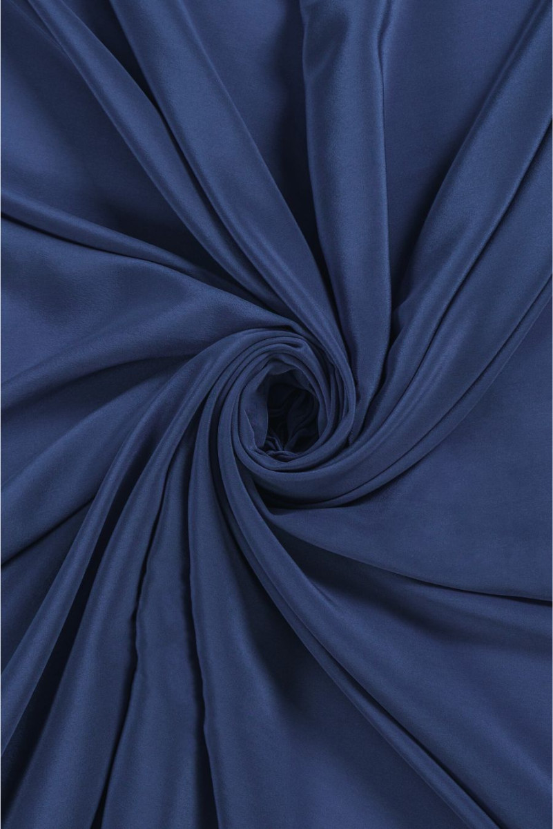 Італійська крепова тканина, виткана з ацетату з домішкою натурального шовку легкого темно-синього кольору. Креп - це тканина з характерним, напівматовим покриттям. Має тонко скручене переплетення, що надає тканині тонку структуру.