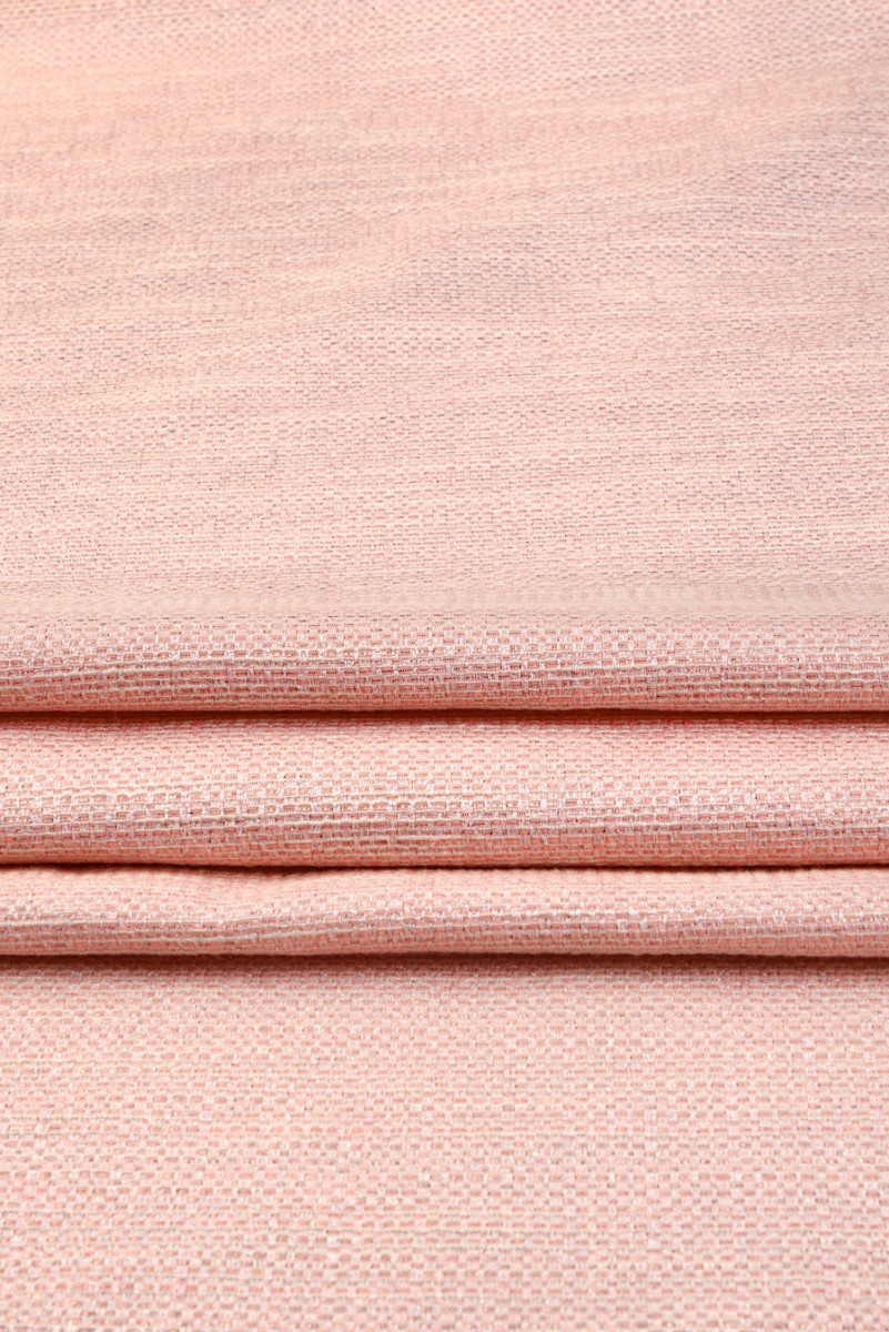 Італійська жакардова костюмна тканина лососевого кольору. Матеріал з чітким переплетенням, що надає йому структуру, весь прикрашений блискучою ниткою в кольорі рожевого золота. Тканина має дуже тонкий малюнок, який стає більш ефектним завдяки ніжному блиску. Вона відмінно підійде для пошиття класичного костюма, сукні, спідниці або в якості декоративної тканини.