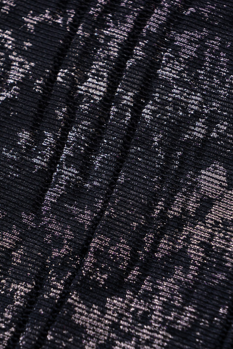 Італійська жакардова тканина у відтінках чорного, фіолетового та бежевого. Злегка еластична, блискуча тканина з ефектом складки.