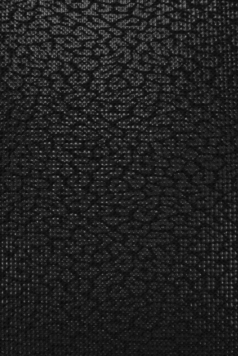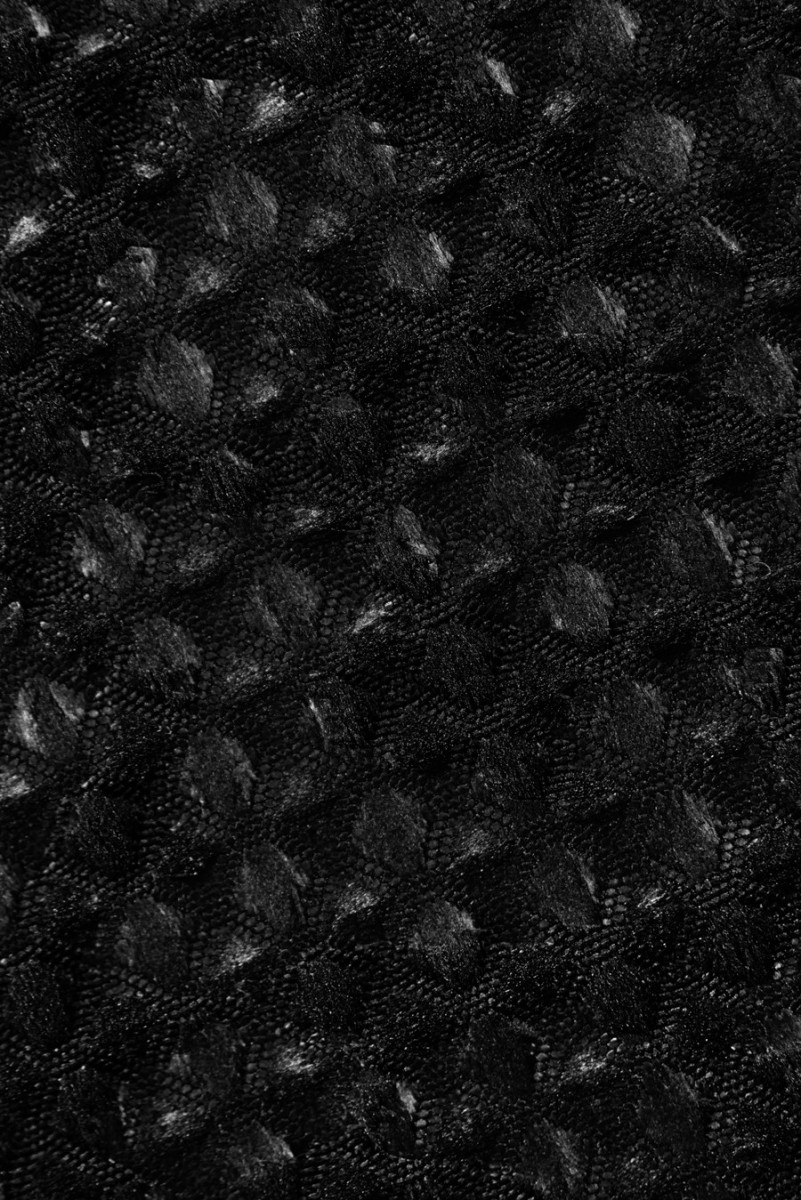 Італійська жакардова костюмна тканина. Тканина чорна, матова з дуже щільним тваринним мотивом - леопардовим принтом, виконана в глянцевому чорному кольорі. Матеріал має дуже структурне переплетення, що нагадує «вафлю», він більш товстий і жорсткий. Він відмінно підійде для пошиття куртки, пальто або спідниці або плаття.