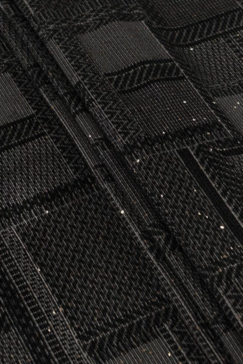 Оригінальна італійська тканина, виткана для відомого модельєра в клаптиковому візерунку з графітових, перламутрових і екрю ниток. Елегантності додають вплетені в нього маленькі золотисті блискітки