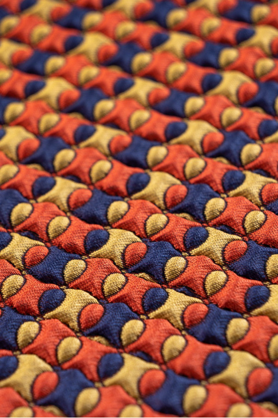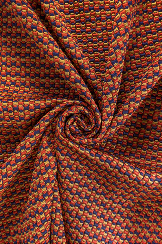 Жакардові «бульбашки» з 3D-структурою. Цікава пропозиція для пальто, курток і в якості декоративної тканини.