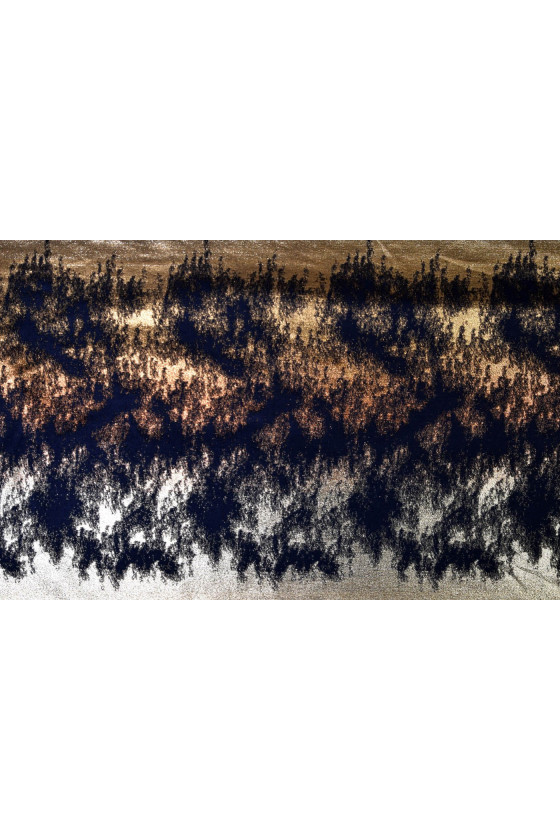 Останній купон італійської тканини жакардового переплетення. Неправильний візерунок зі срібла і міді металізованого волокна красиво прикрашає темно-синій фон. Тканина м'яка і приємна, «тепла» на дотик. За допомогою цього купона ви пошиєте дуже оригінальну спідницю. У поєднанні з іншою тканиною вона може стати основою для пошиття красивої куртки або толстовки, а також прикрасою, наприклад, подушки.