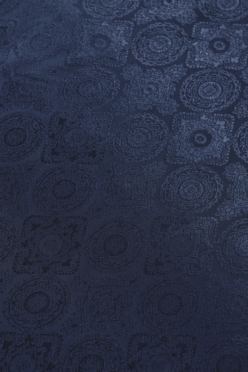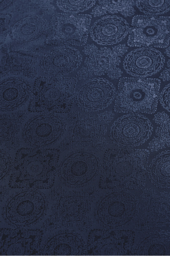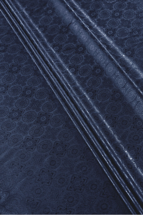 Talianska žakárová podšívka v modro-fialovej farbe. Najmódnejší vzor orientálnych ozdôb. Látka je neelastická, mierne lesklá. Ideálne na podšívku kabátov, búnd, viest, búnd.