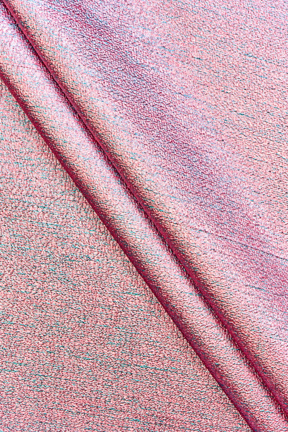 Itaalia jacquardi kostüümikangas heleroosas ja türkiissinine lurex-niidiga. Keskmise paksusega kangas, mitteelastne, jäik, kaunilt läikiv. Ideaalne kostüümi, kleidi, seeliku, jaki, mantli õmblemiseks või dekoratiivsetel eesmärkidel.